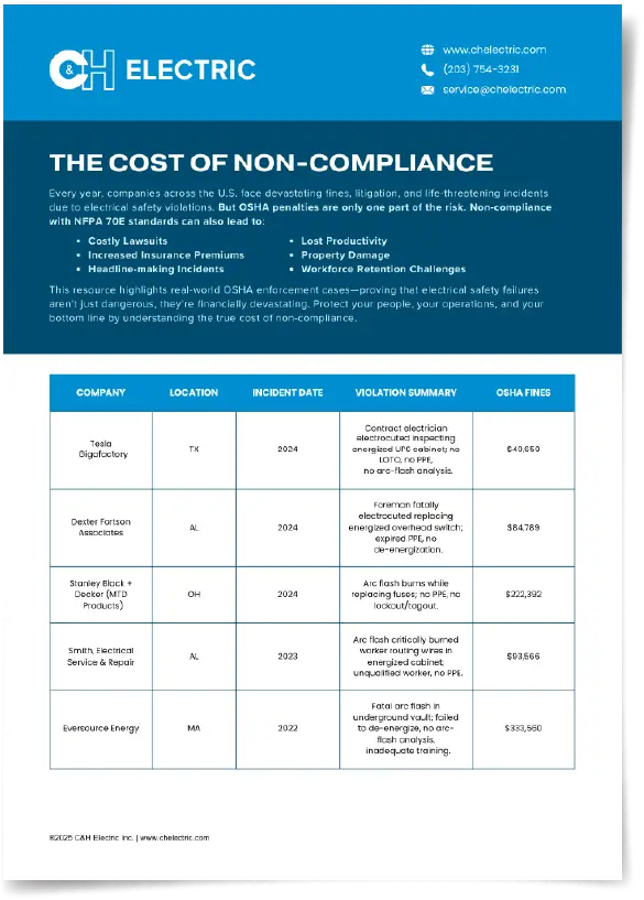 This document outlines real-world case studies, penalty figures, and the hidden costs of ignoring NFPA 70E compliance. Download a copy to learn more.